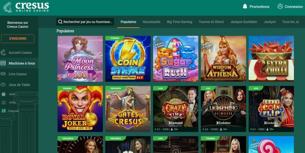 La bibliothèque de jeux de Cresus Casino s’appuie sur 34 développeurs de logiciels différents, offrant une plateforme diversifiée qui couvre l’essentiel des attentes des joueurs. Parmi les fournisseurs présents, on retrouve notamment Evolution Gaming, Pragmatic Play et Swintt pour les jeux en direct, ainsi qu’iSoftBet, Gamomat et Reflex Gaming pour les machines à sous. Le casino live propose des expériences immersives comme Crazy Time, Lightning Roulette ou encore le Live Blackjack, permettant aux joueurs d’interagir en temps réel avec de vrais croupiers.