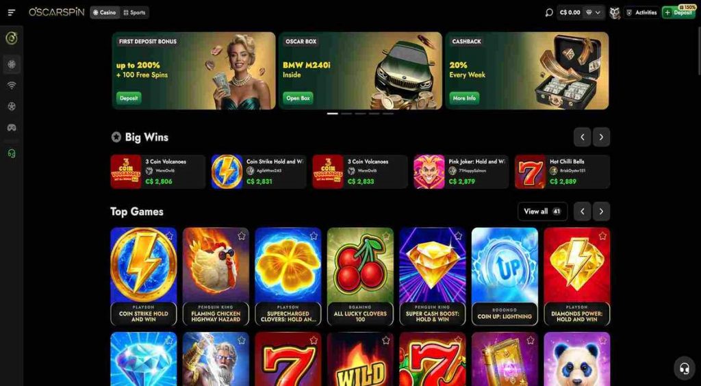 Le catalogue de jeux d’OscarSpin Casino dépasse les 6 000 titres, comprenant des machines à sous, des jeux de table, des expériences en direct avec de vrais croupiers, et une section de paris sportifs complète. Parmi les fournisseurs de logiciels présents, on retrouve des noms de référence comme BetSoft, Evolution Gaming, NetEnt, Yggdrasil, Pragmatic Play et Spinomenal, garantissant une qualité et une diversité de gameplay irréprochables. La section casino en direct comprend des titres populaires comme Lightning Roulette, Crazy Time, Cash or Crash, Mega Wheel et Texas Hold’em Bonus Poker, tandis que la section sportsbook couvre du football au snooker, en passant par l’esport.